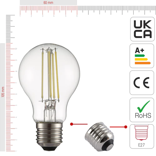 LampLED A60 6,5W E27 CLEAR 806LM 6500K 85-265VTEKL