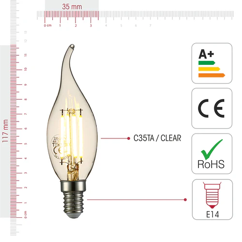 Lampa LED C35TA 4W E14 CLEAR 470LM 2700K 85-265V