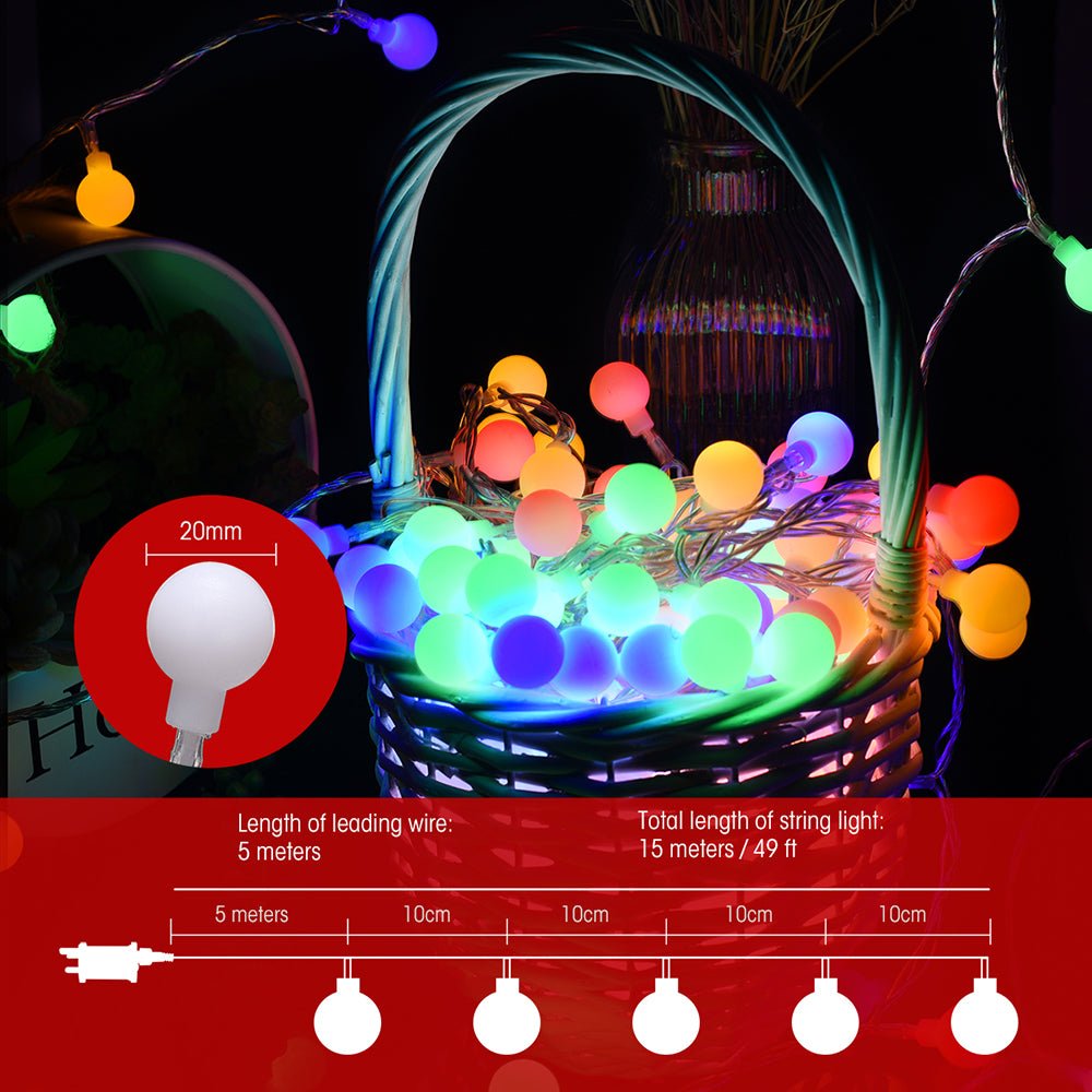Carına LED Globe Lıght 100 LEDs 15m wıth Power Adaptor Multı-colour LED Strıng Lıght
