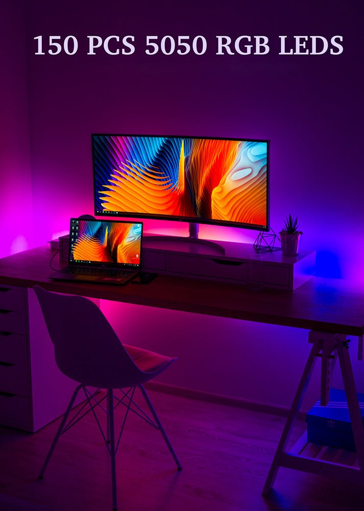 Holıday 5m RGB LED Strıp Lıght 150 LEDs SMD5050 DC12V IP20 25W 2A Adaptor wıth Remote controler
